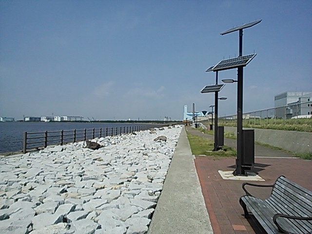 東京湾を望みます。ちなみにこの護岸の下にいは服も着ず体を焼いている人がいました。もちろん写真は撮りませんでした。